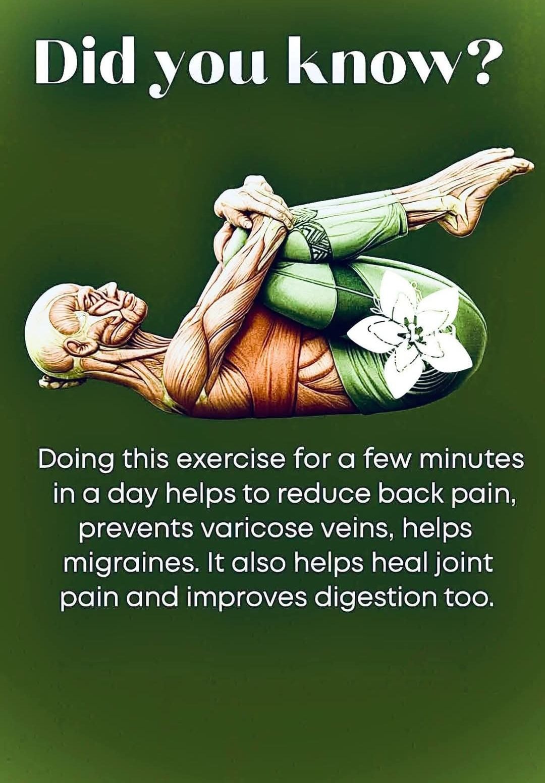 Did yu know? Doing this exercise for a few minutes in a day helps to reduce back pain, prevents varicose veins, helps migraines. It also helps heal joint pain and improves digestion too.’